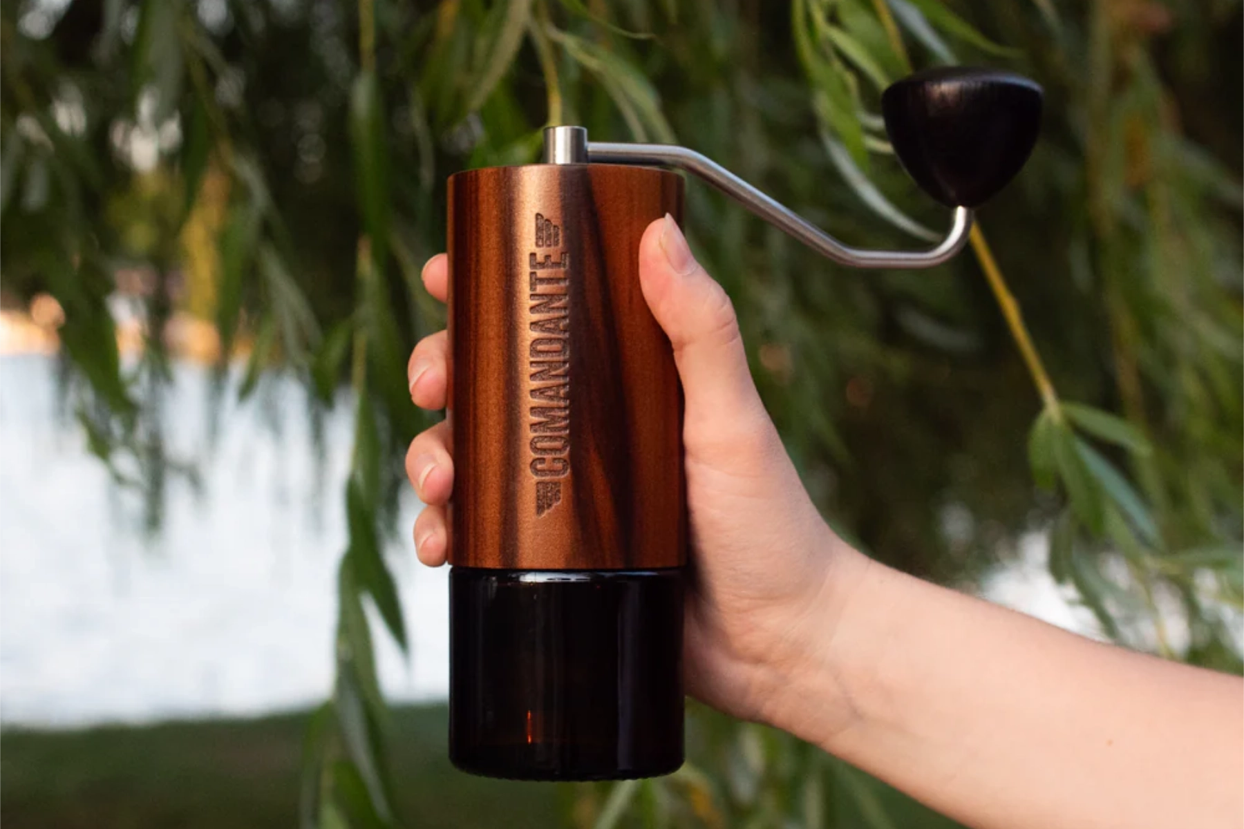 The iconic Comandante® C40 is a robust and precise hand coffee grinder with a unique and groundbreaking grinder: Nitro Blade®. The 100% natural Liquid Amber veneer makes every single grinder unique.