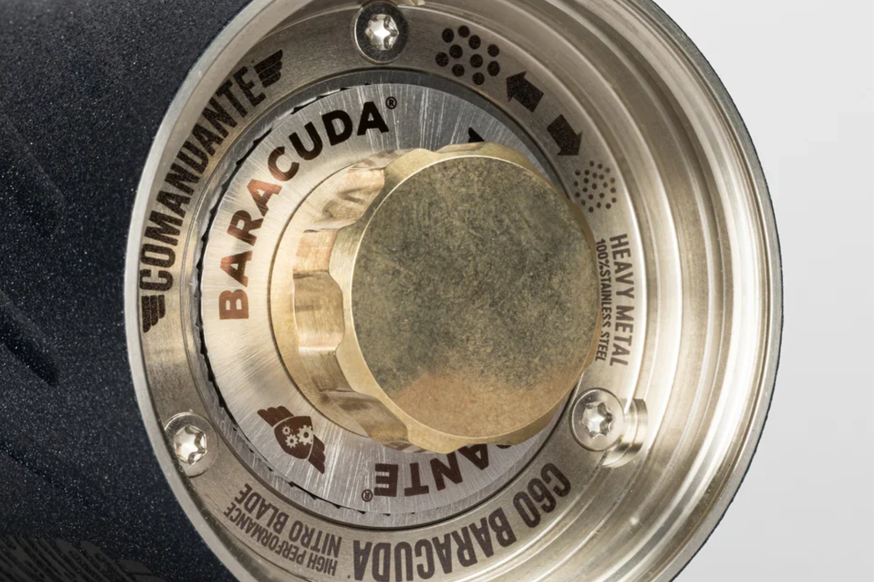 This is not about bigger being better – for burrs, the opposite is normally true. But Comandante was curious: how big a burr set could they fit into a familiar and manageable manual grinder format, chasing higher productivity without sacrificing grind performance? In the end, the power of their BARACUDA® burr set pushed them to create a new grinder body with a solid chassis that could harness its full potential. The unibody construction – milled and crafted out of a single block of steel – delivers absolute stability and maximum drivetrain efficiency. Expect decades of unwavering and world-class grind performance at incredible speed: well over a gram per second at filter coffee grind settings.